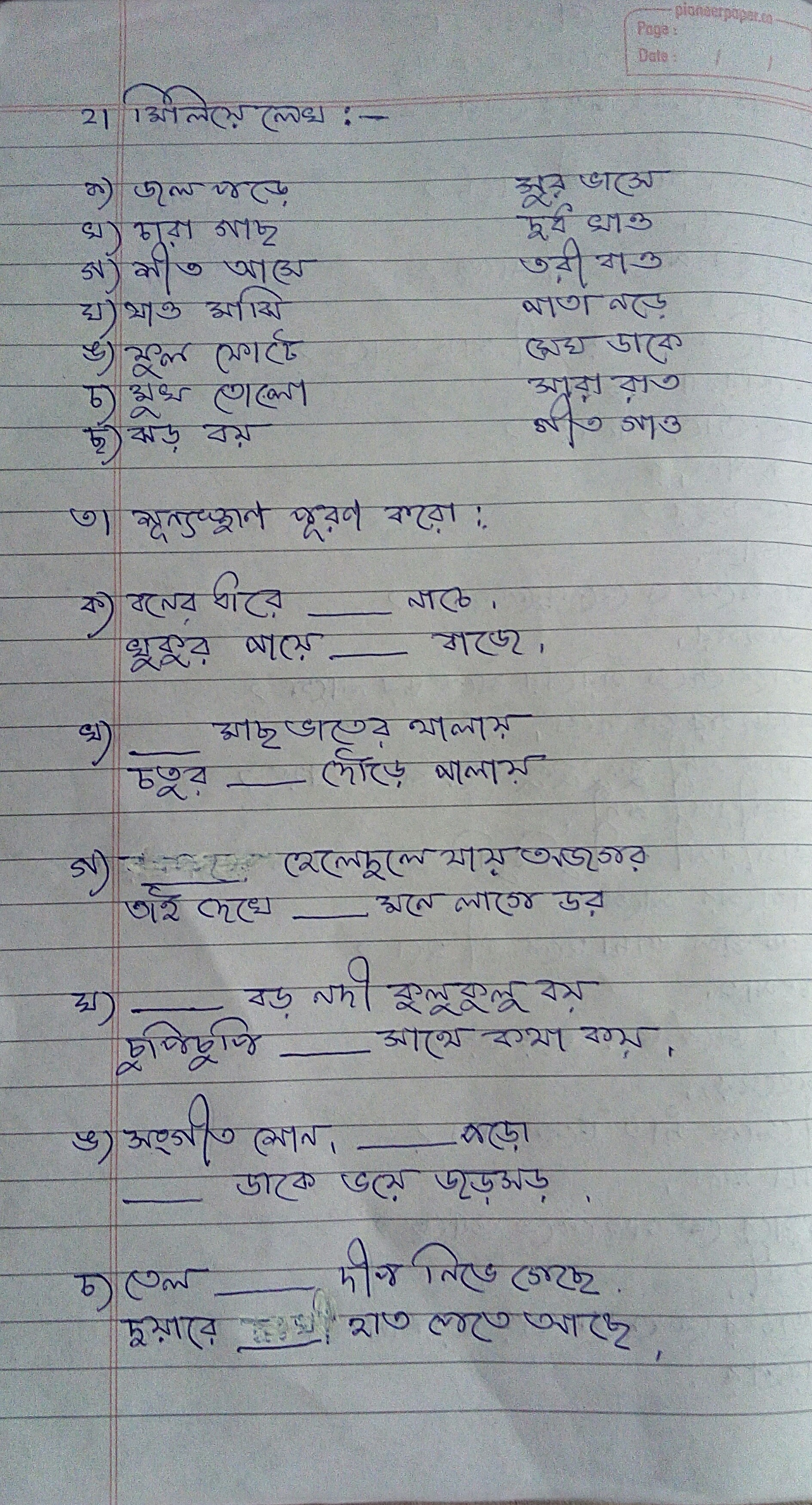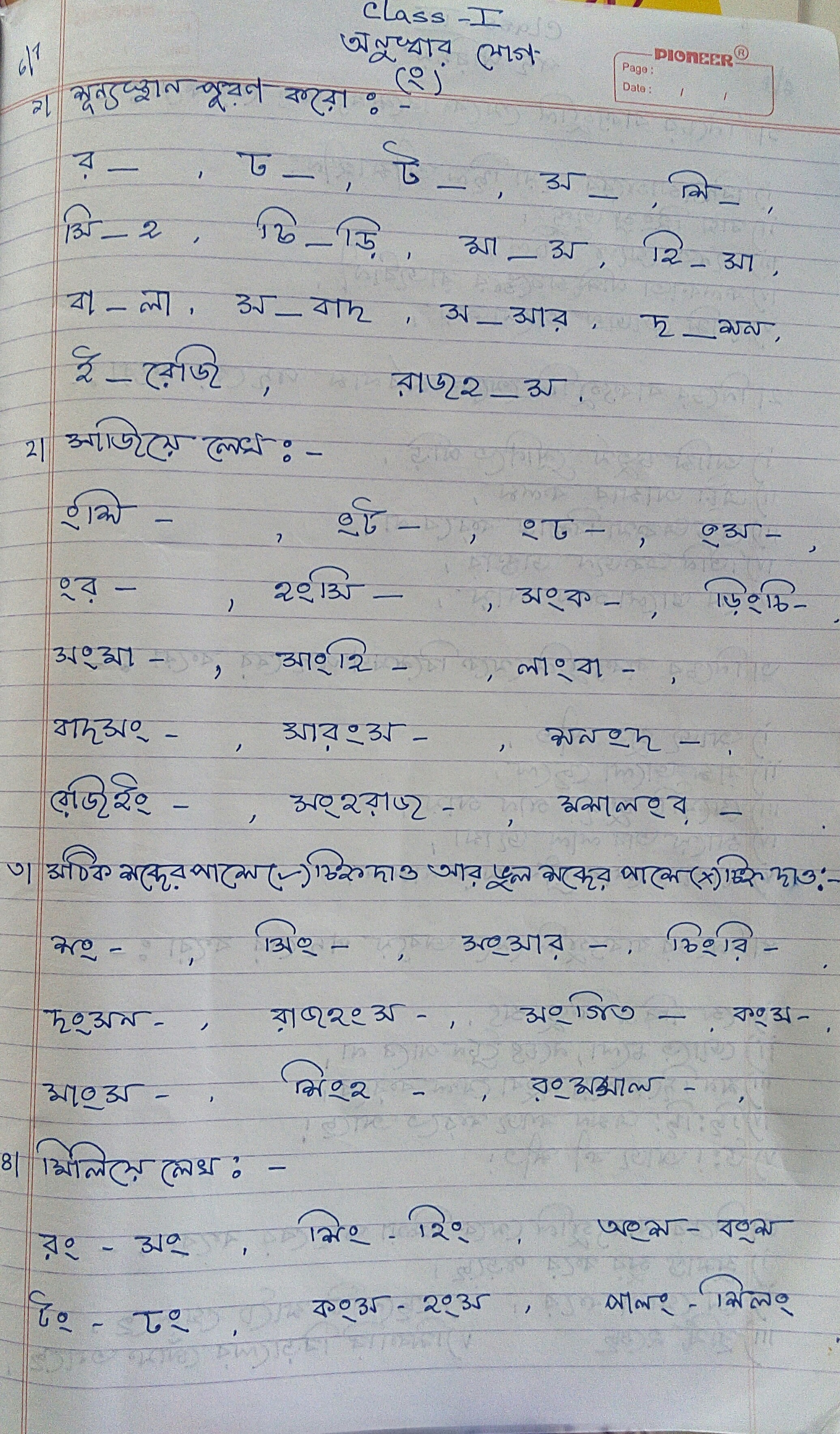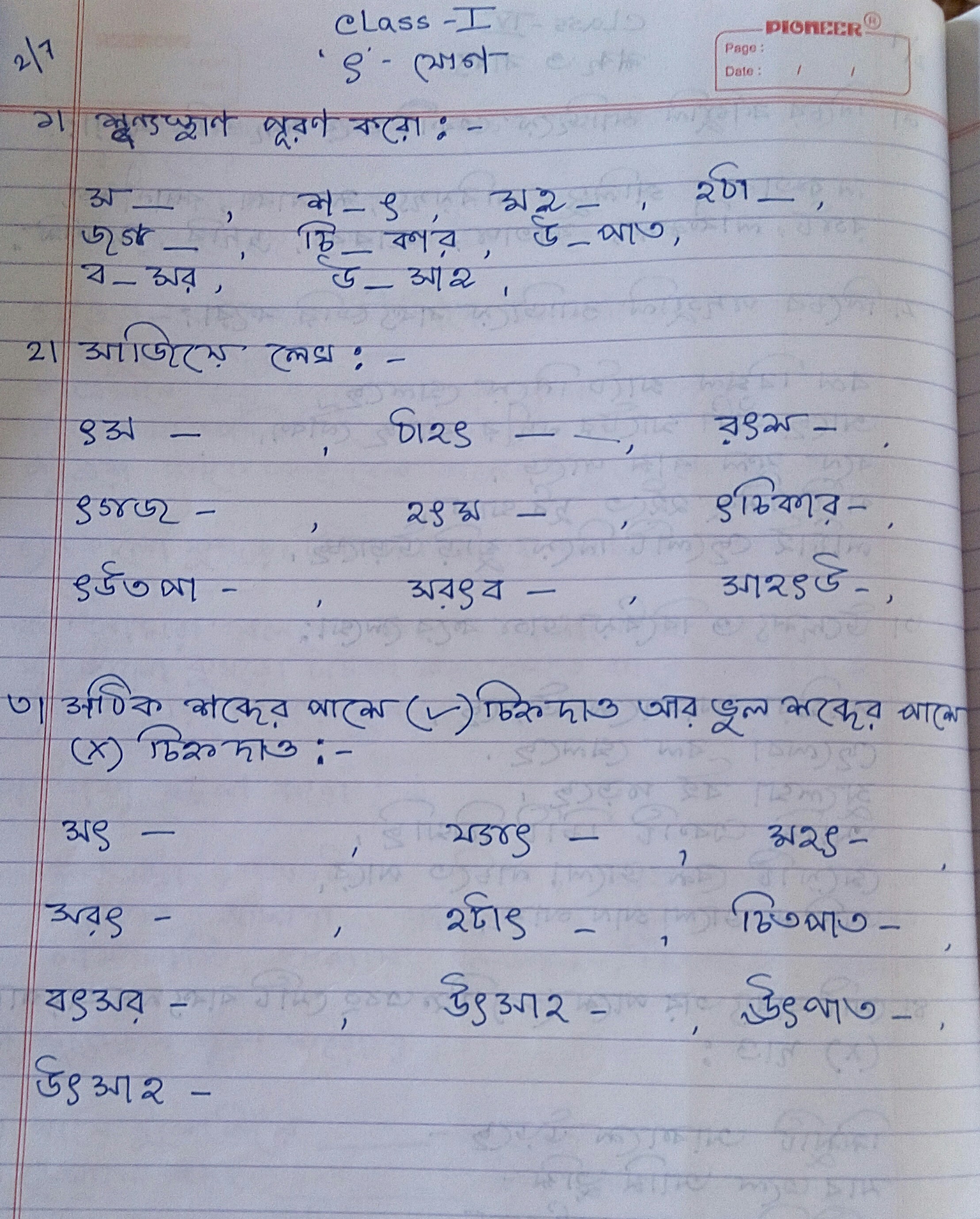 Online Classes - worksheet class 1 bengali