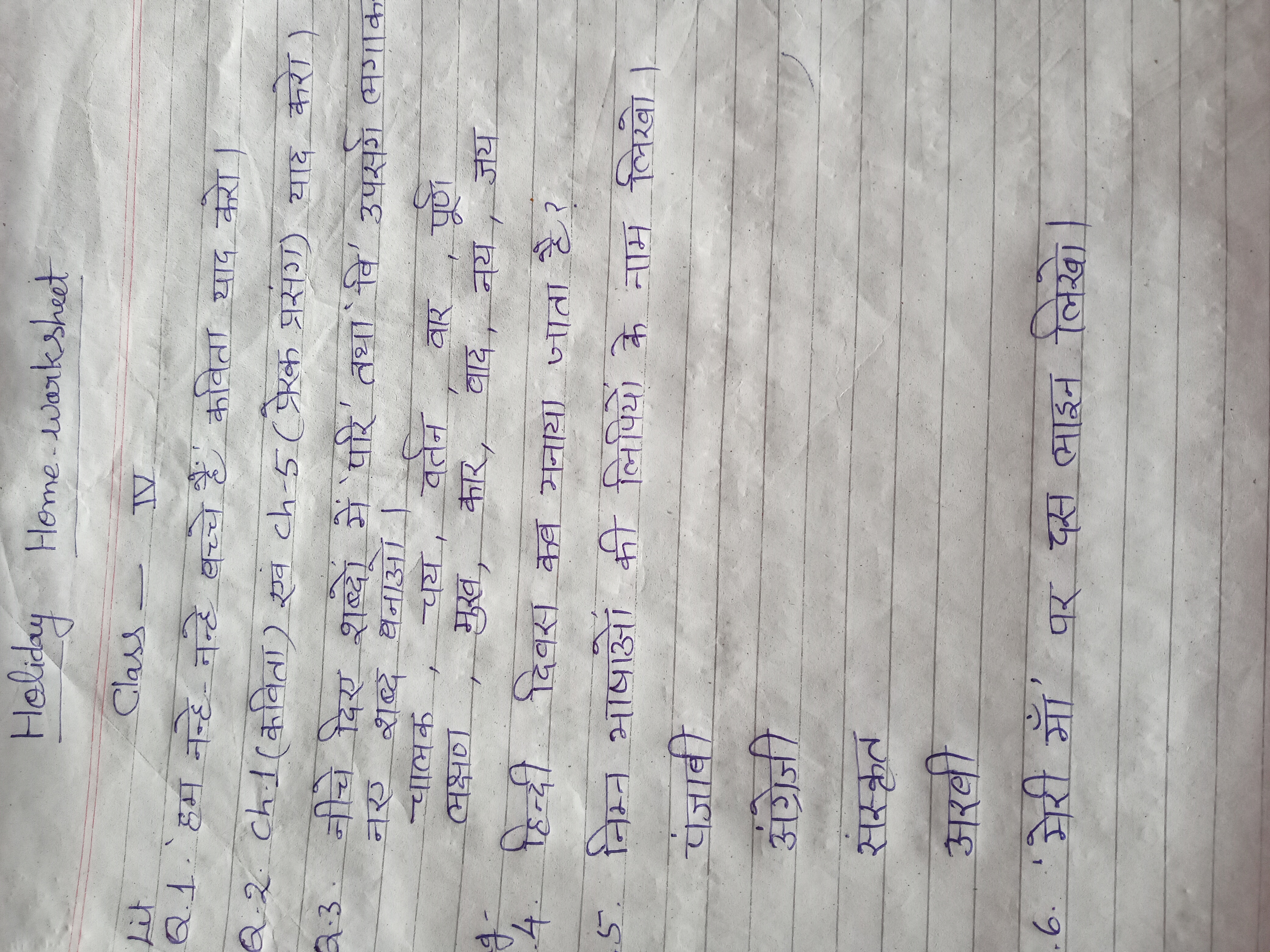 Online Classes - worksheet class 4 hindi