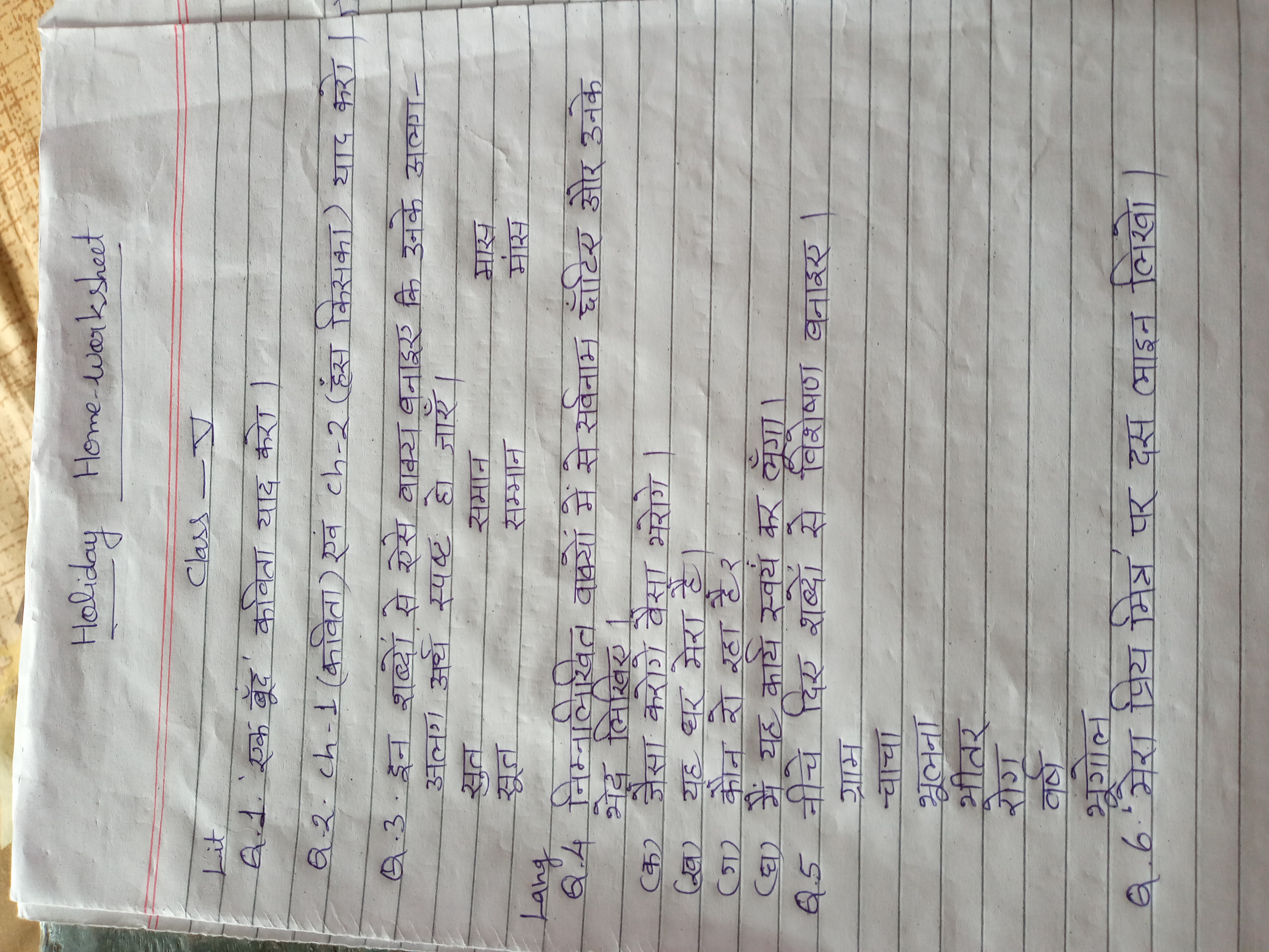 Online Classes - worksheet class 5 hindi