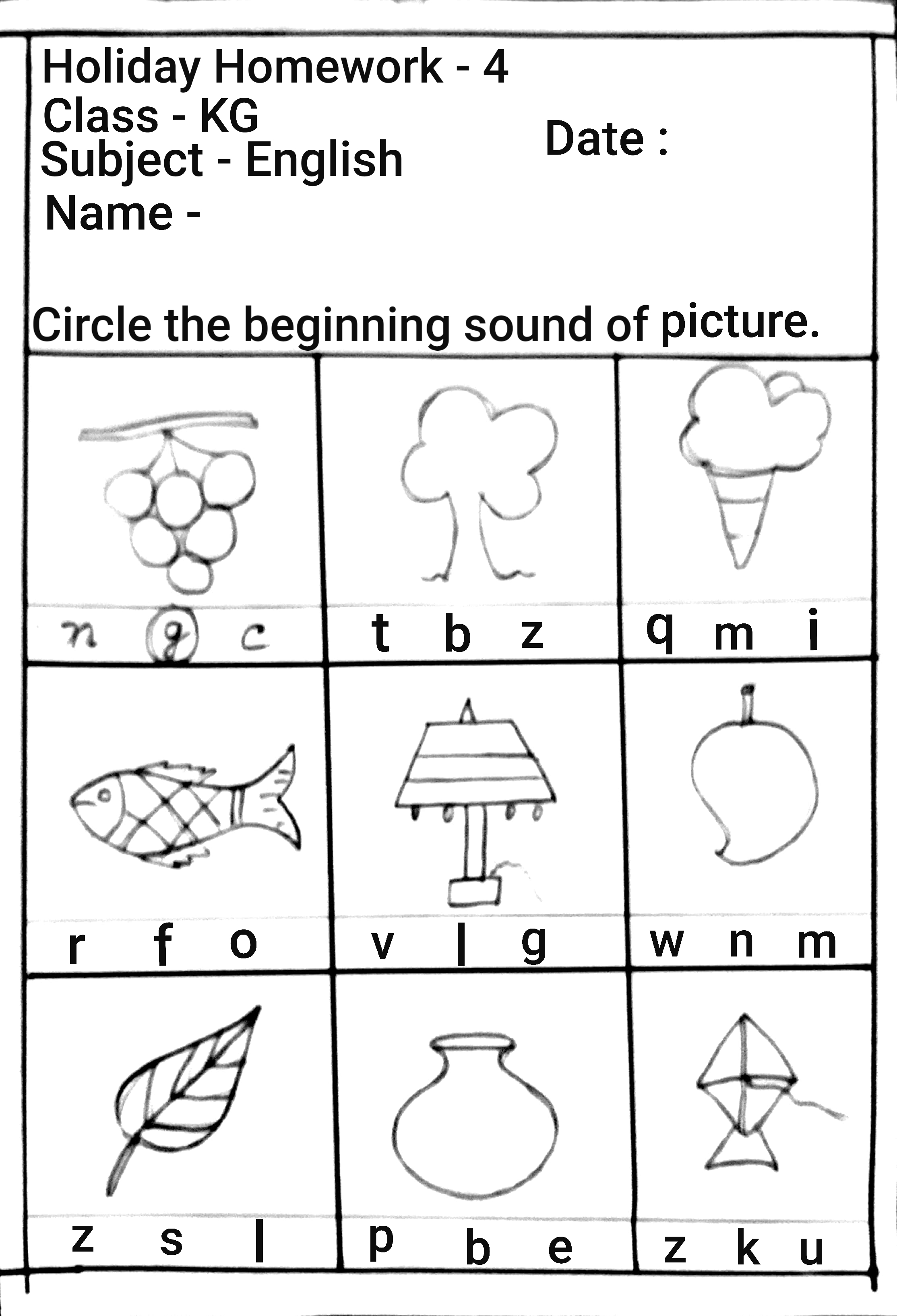 Online Classes - worksheet class kg english
