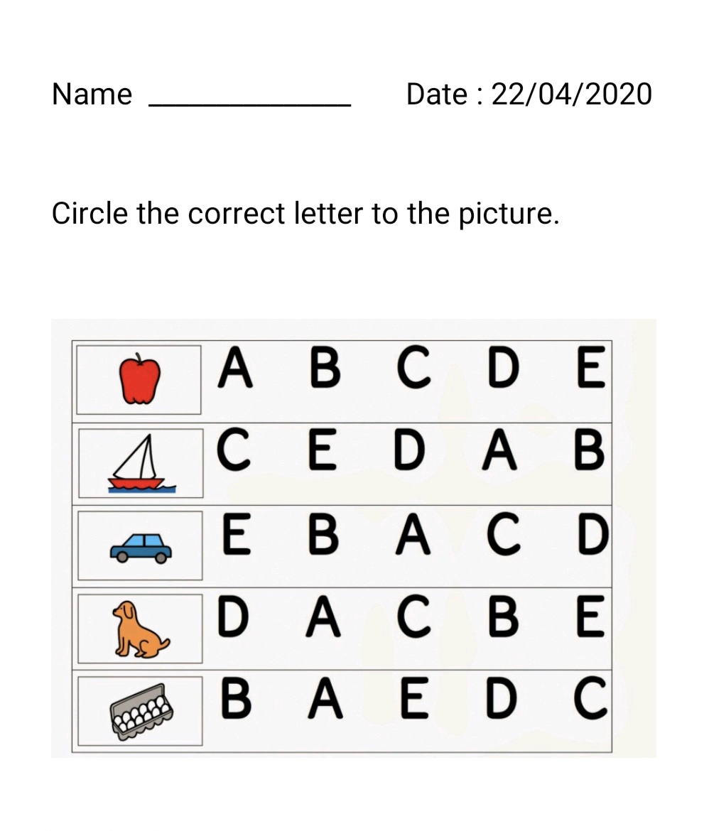 Circle the correct letter of the picture |