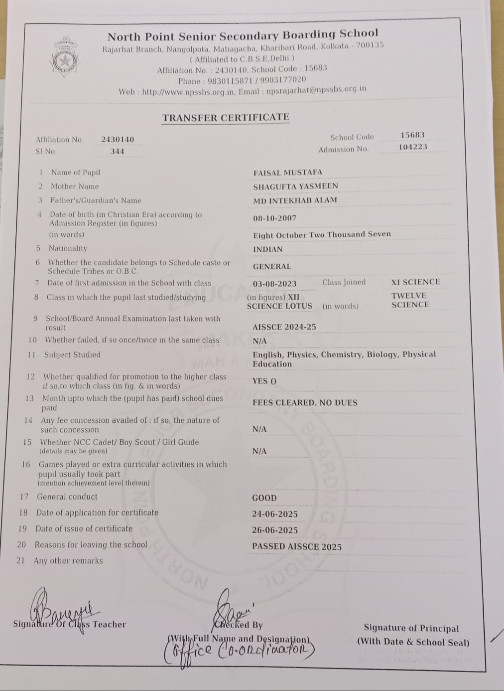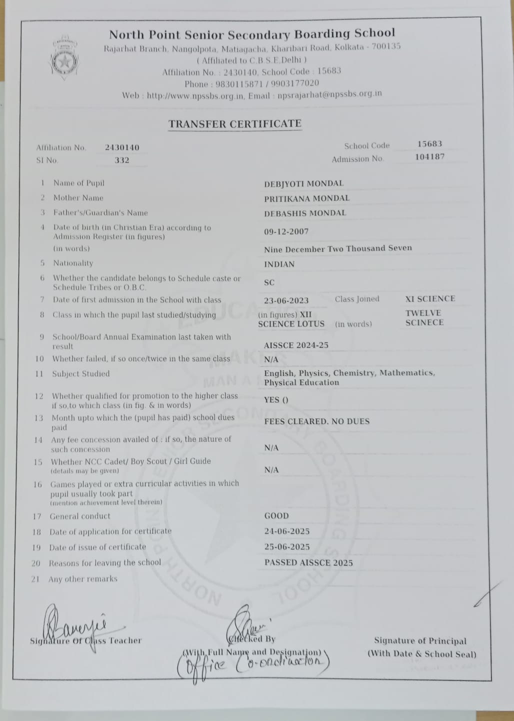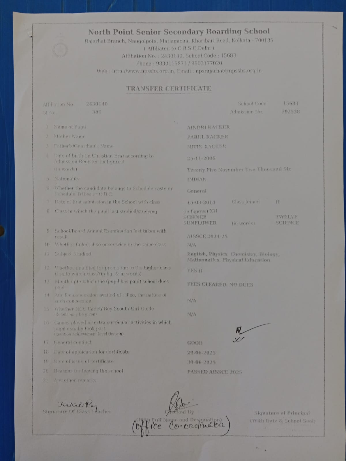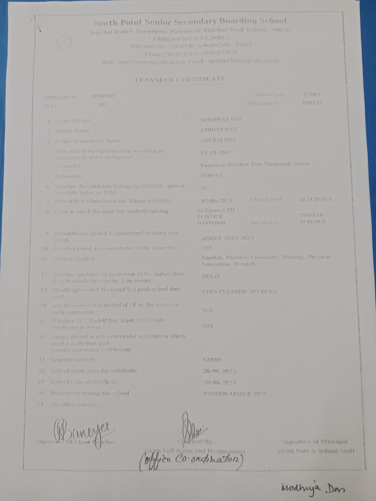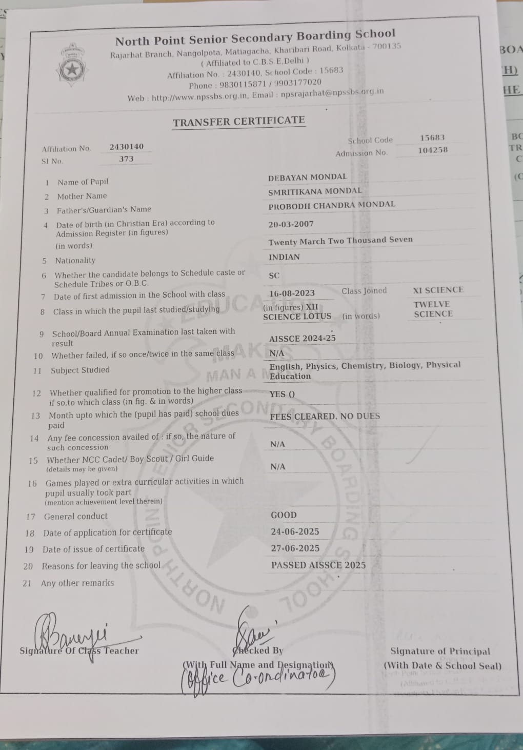 Transfer Certificate