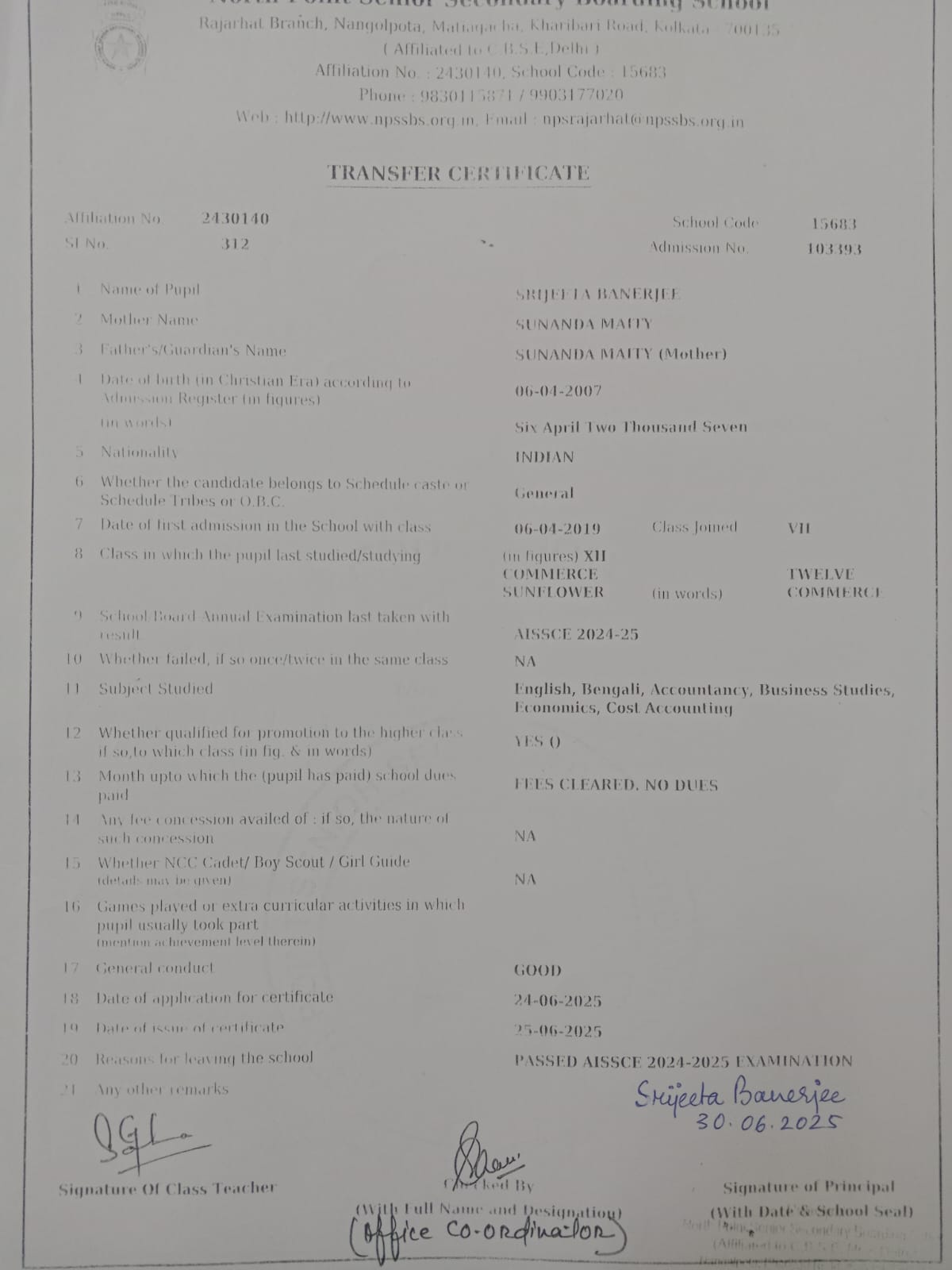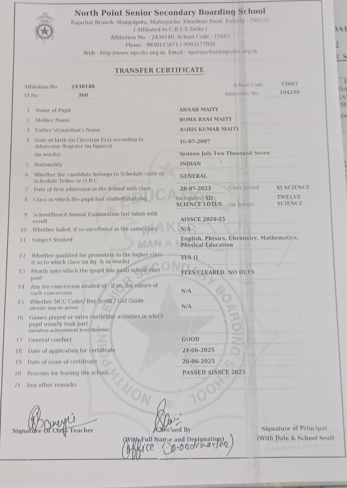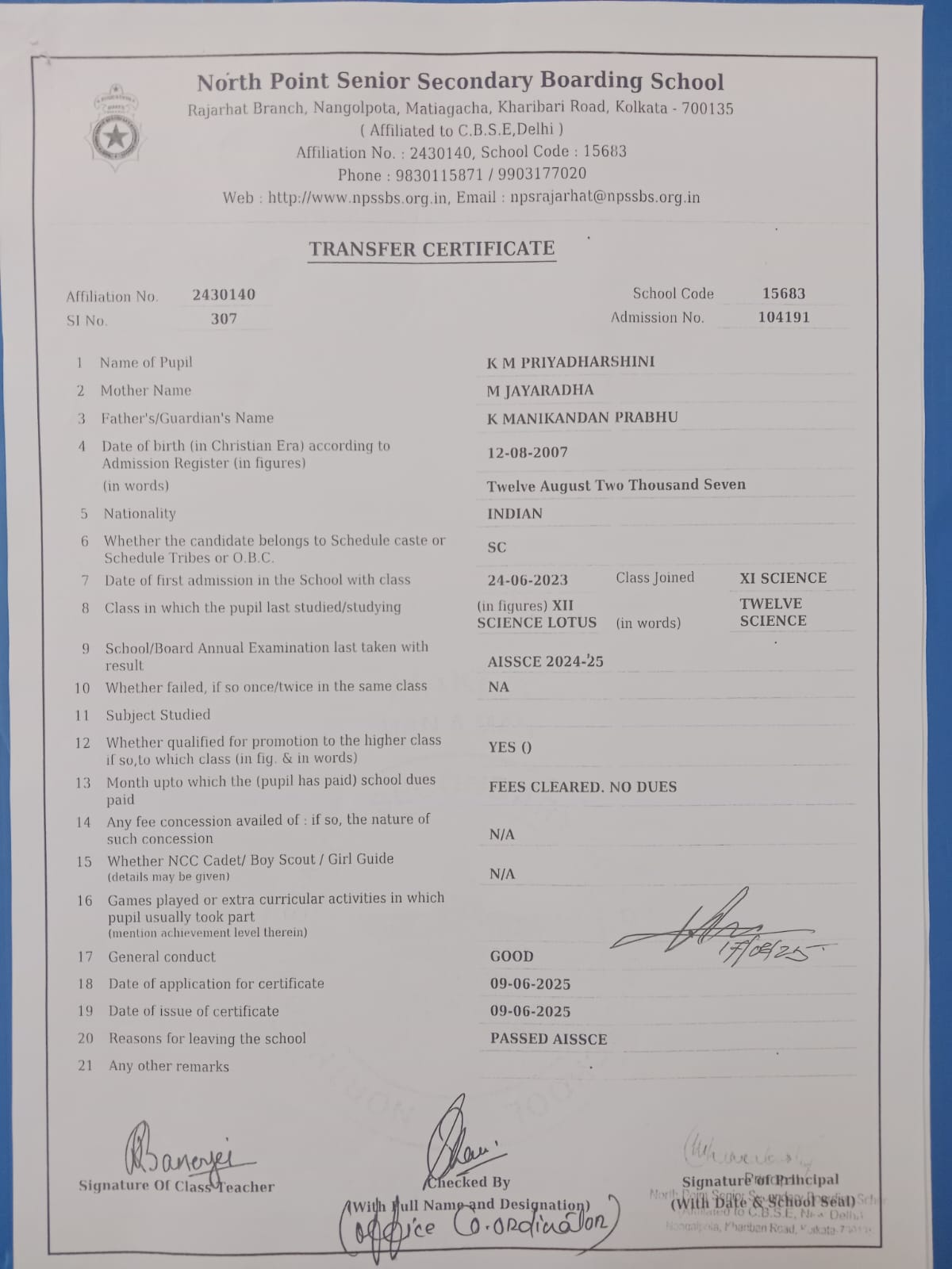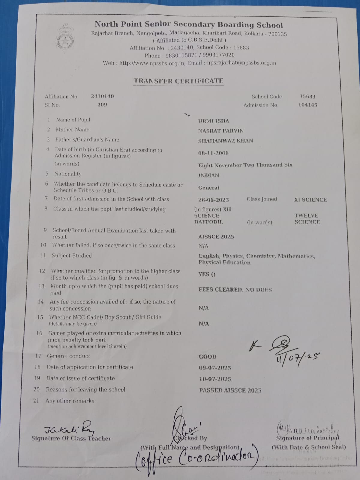 Transfer Certificate