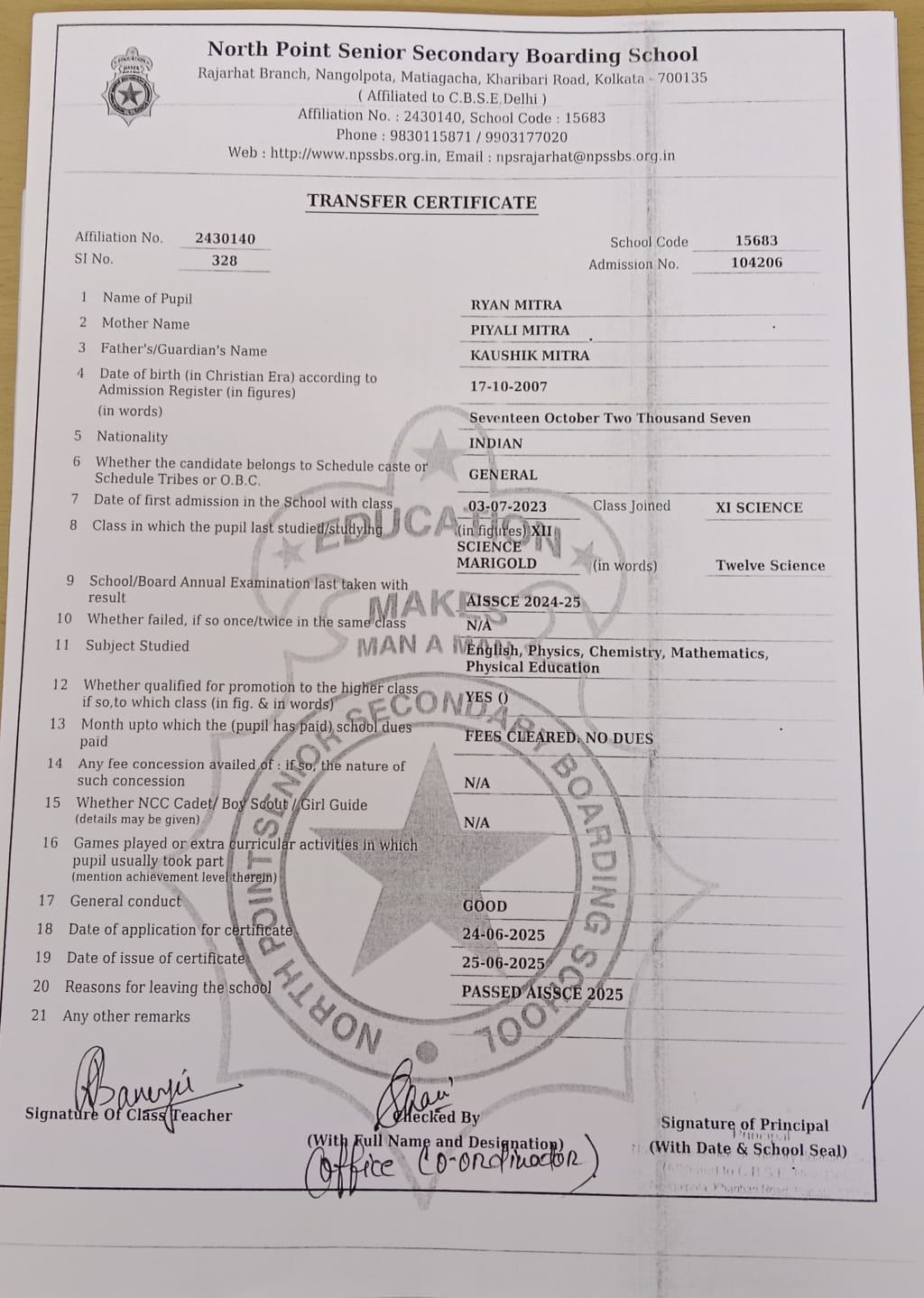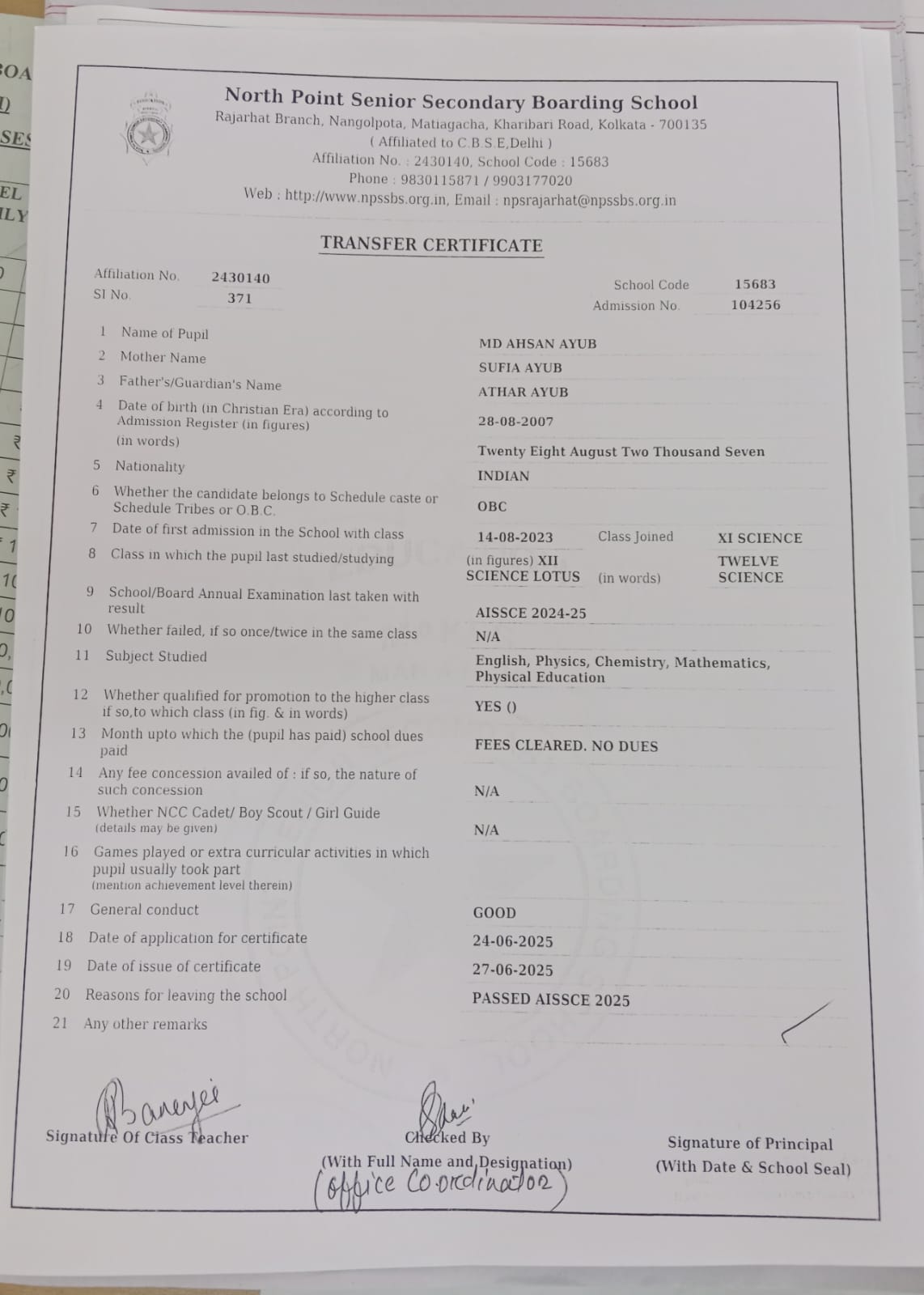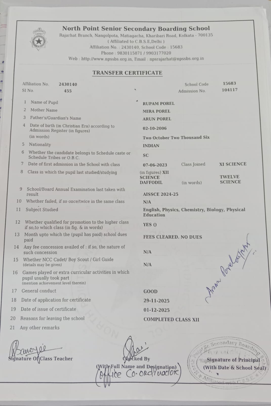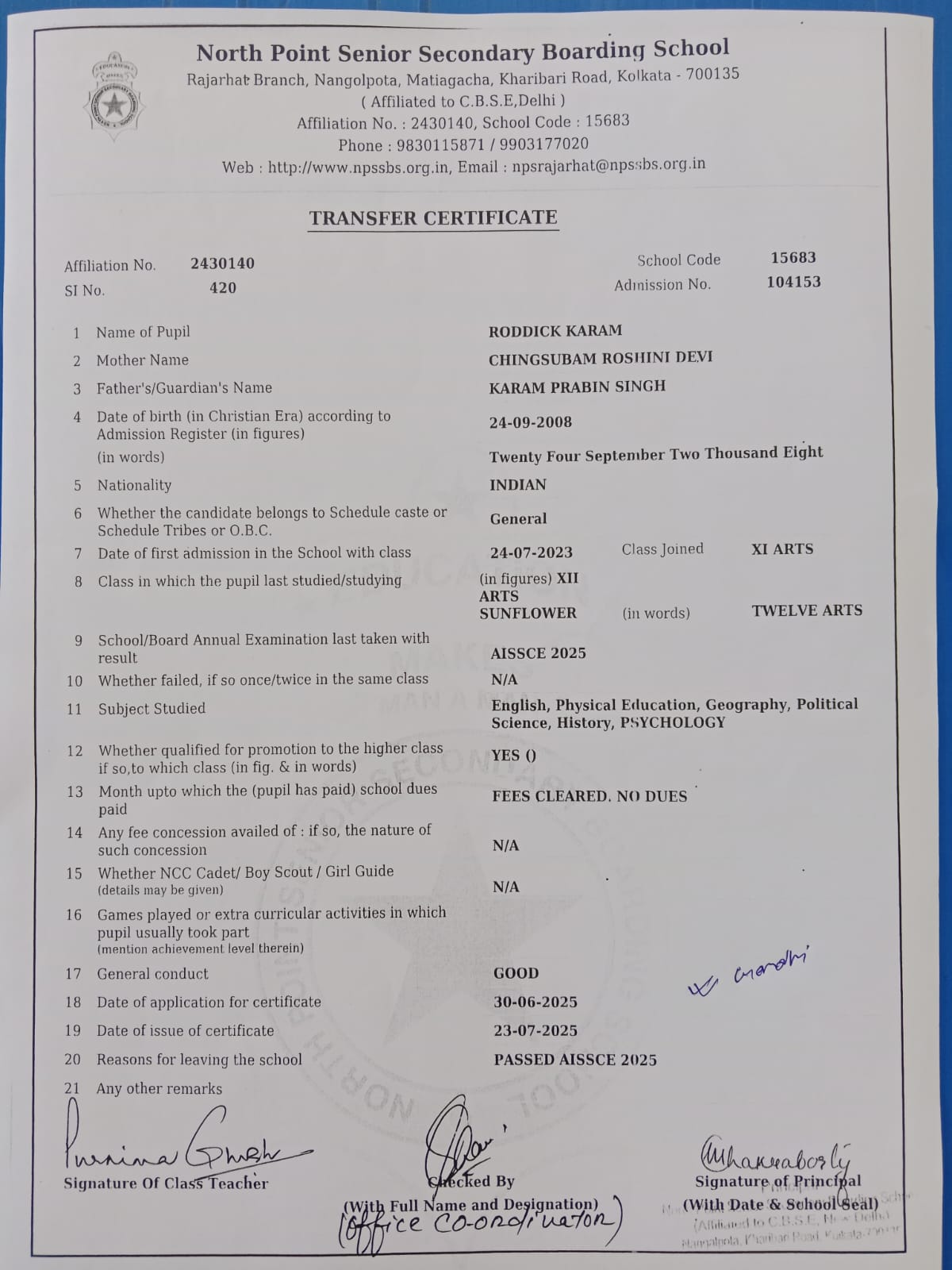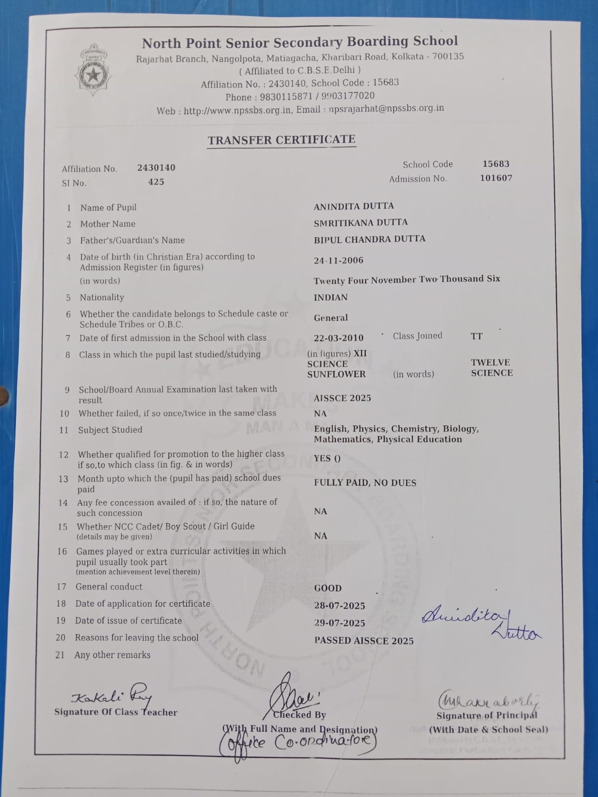 Transfer Certificate