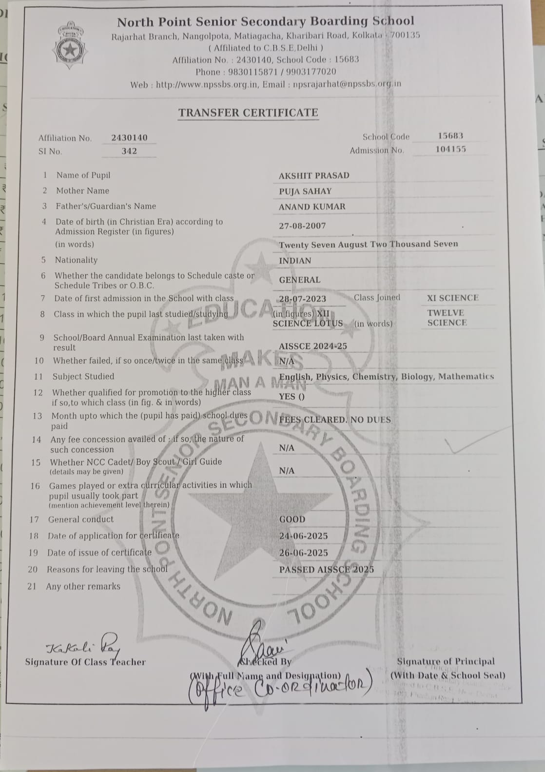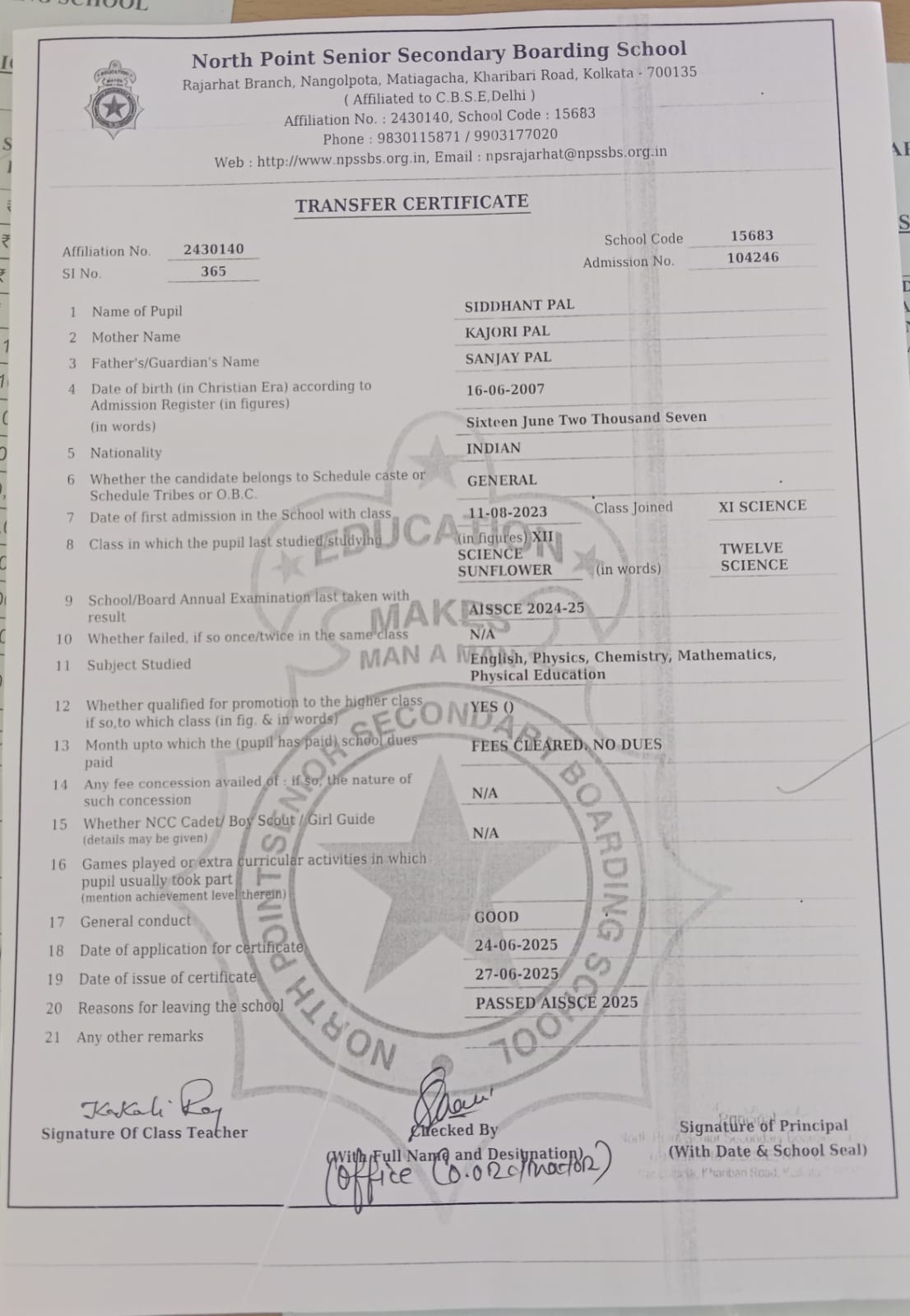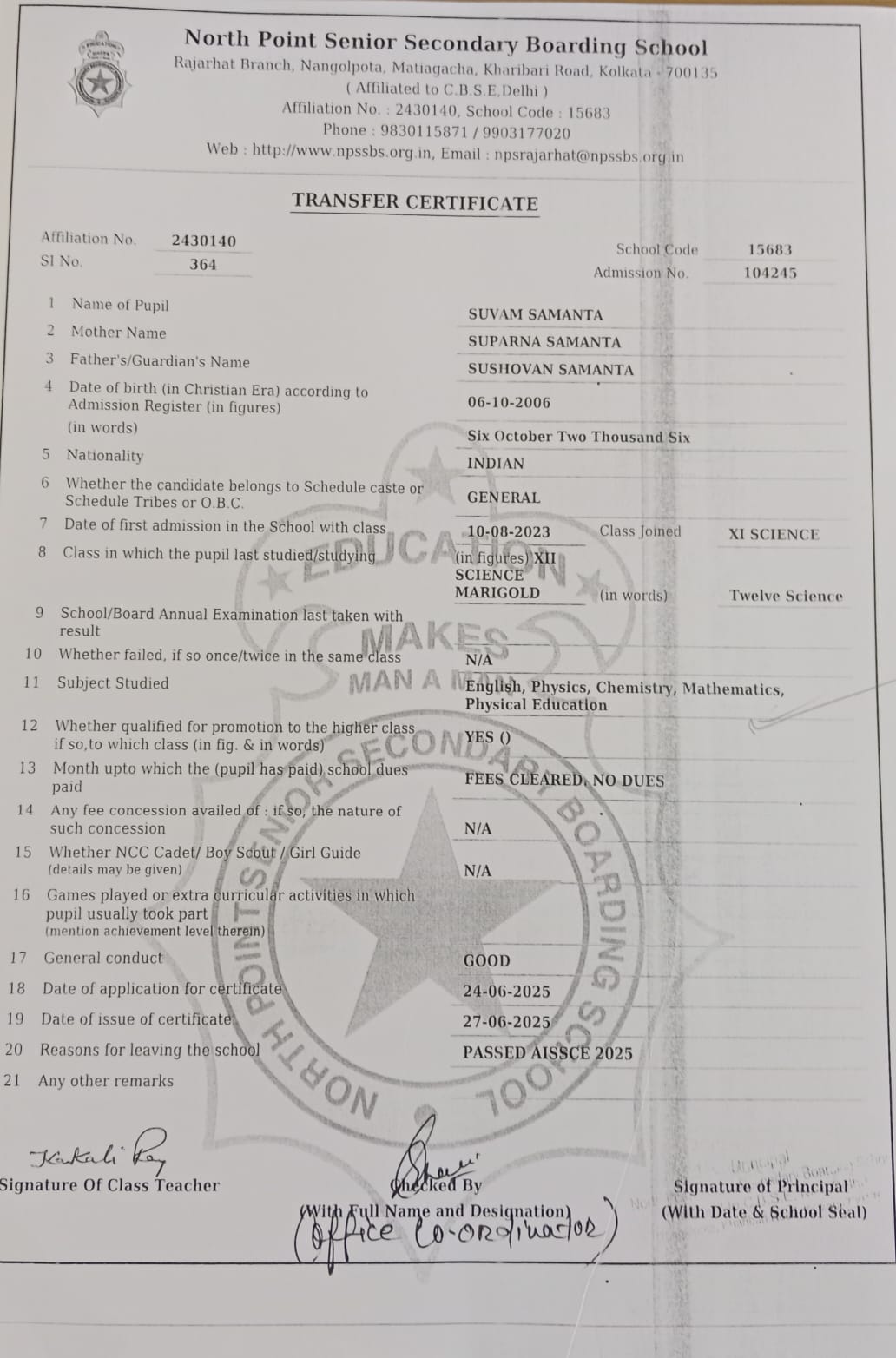 Member of West Bengal Association of Private Affiliated Schools (WBAPAS), Kolkata