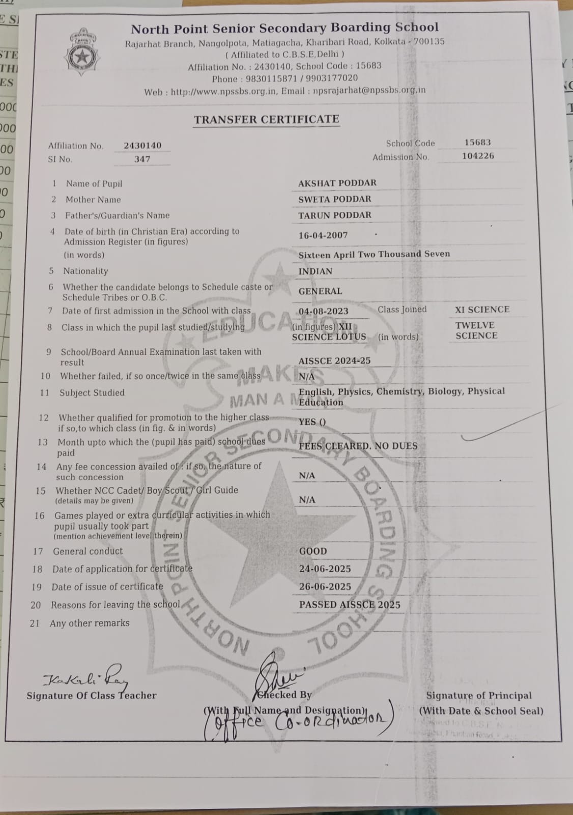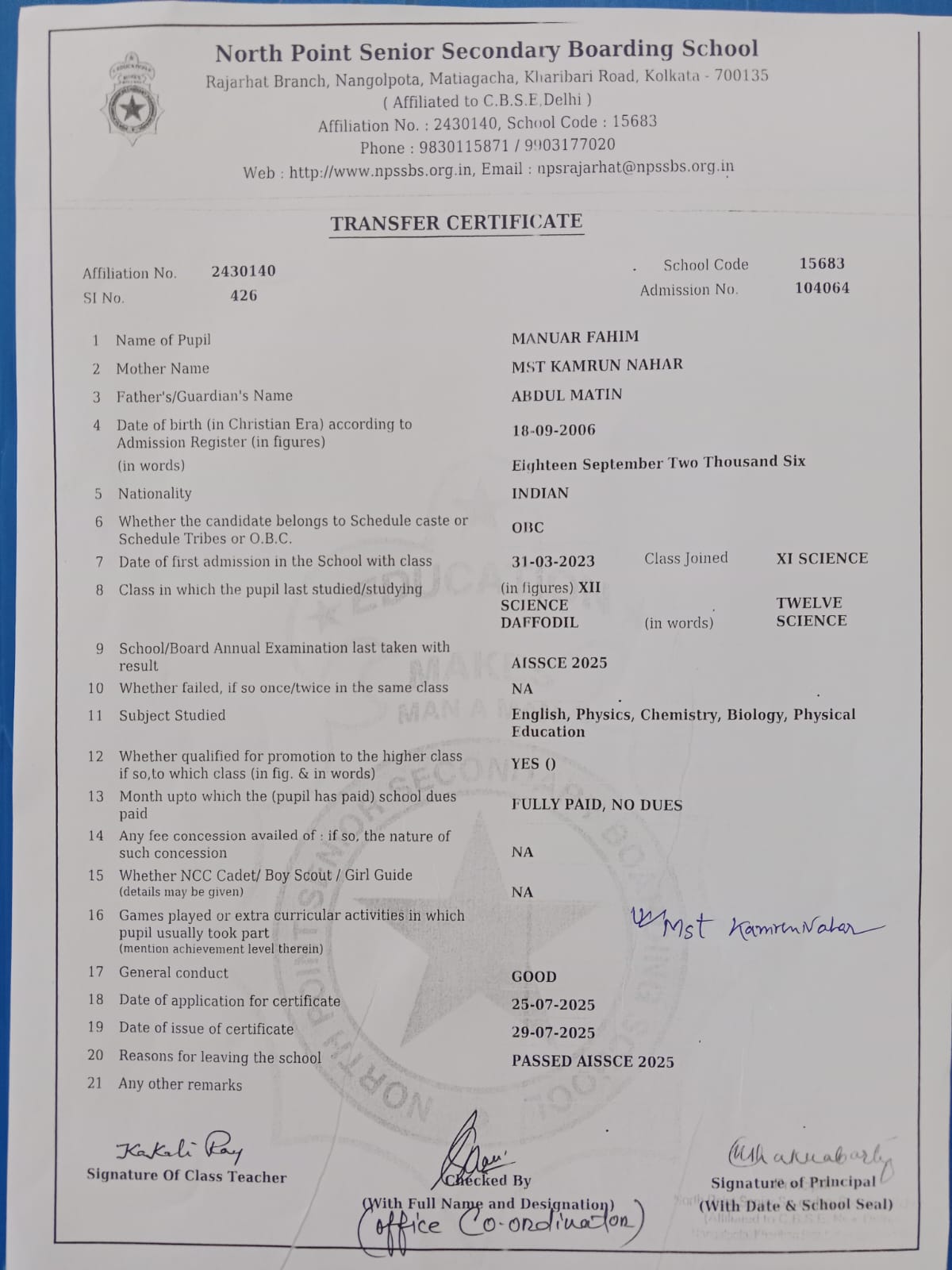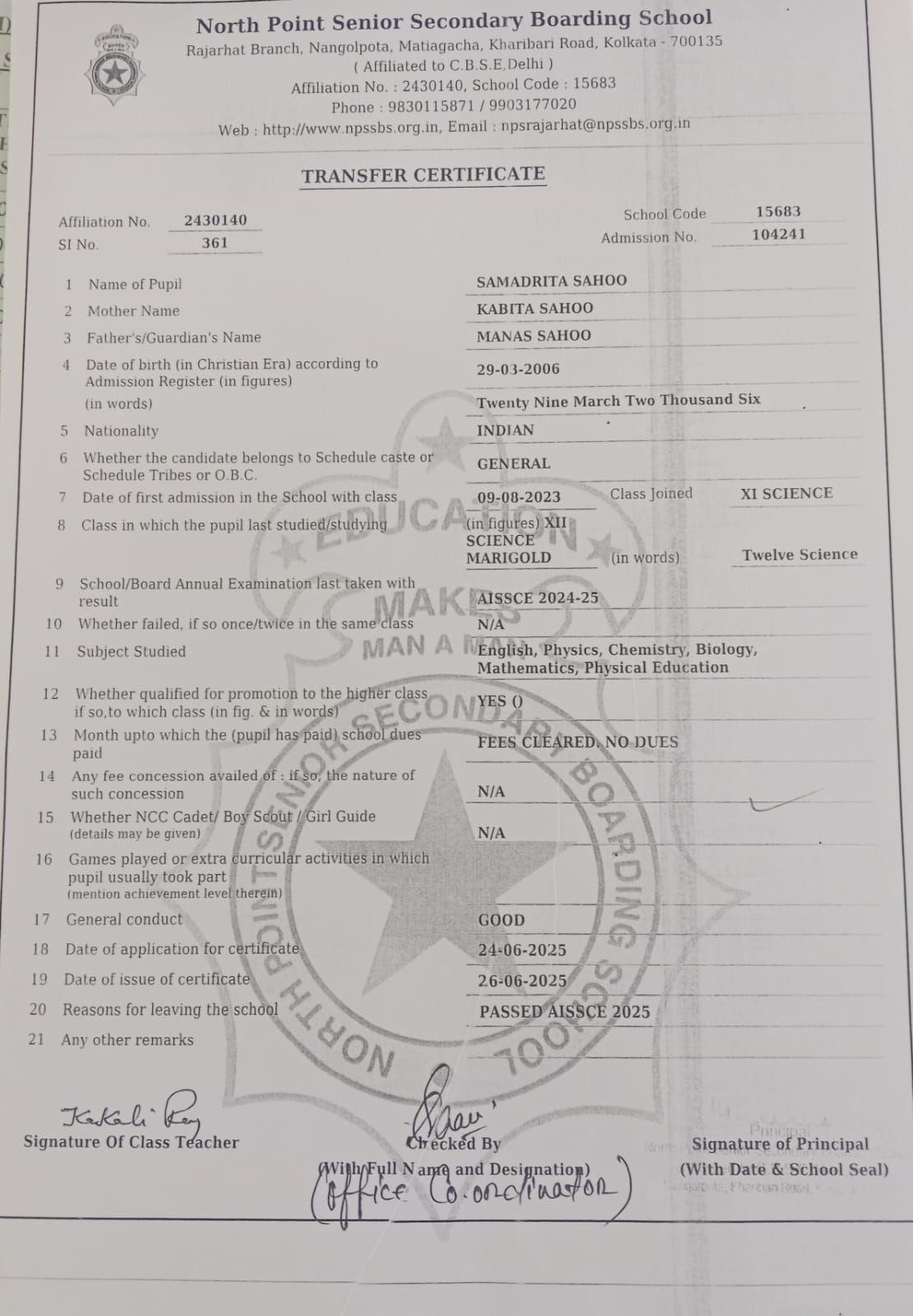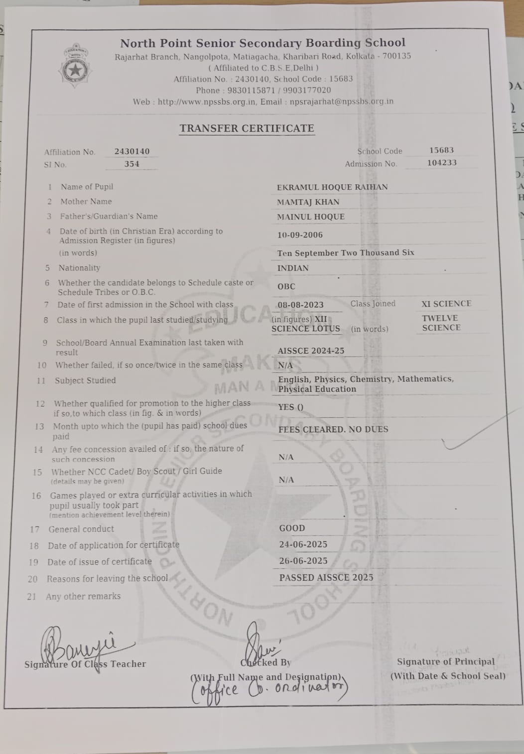 Member of West Bengal Association of Private Affiliated Schools (WBAPAS), Kolkata