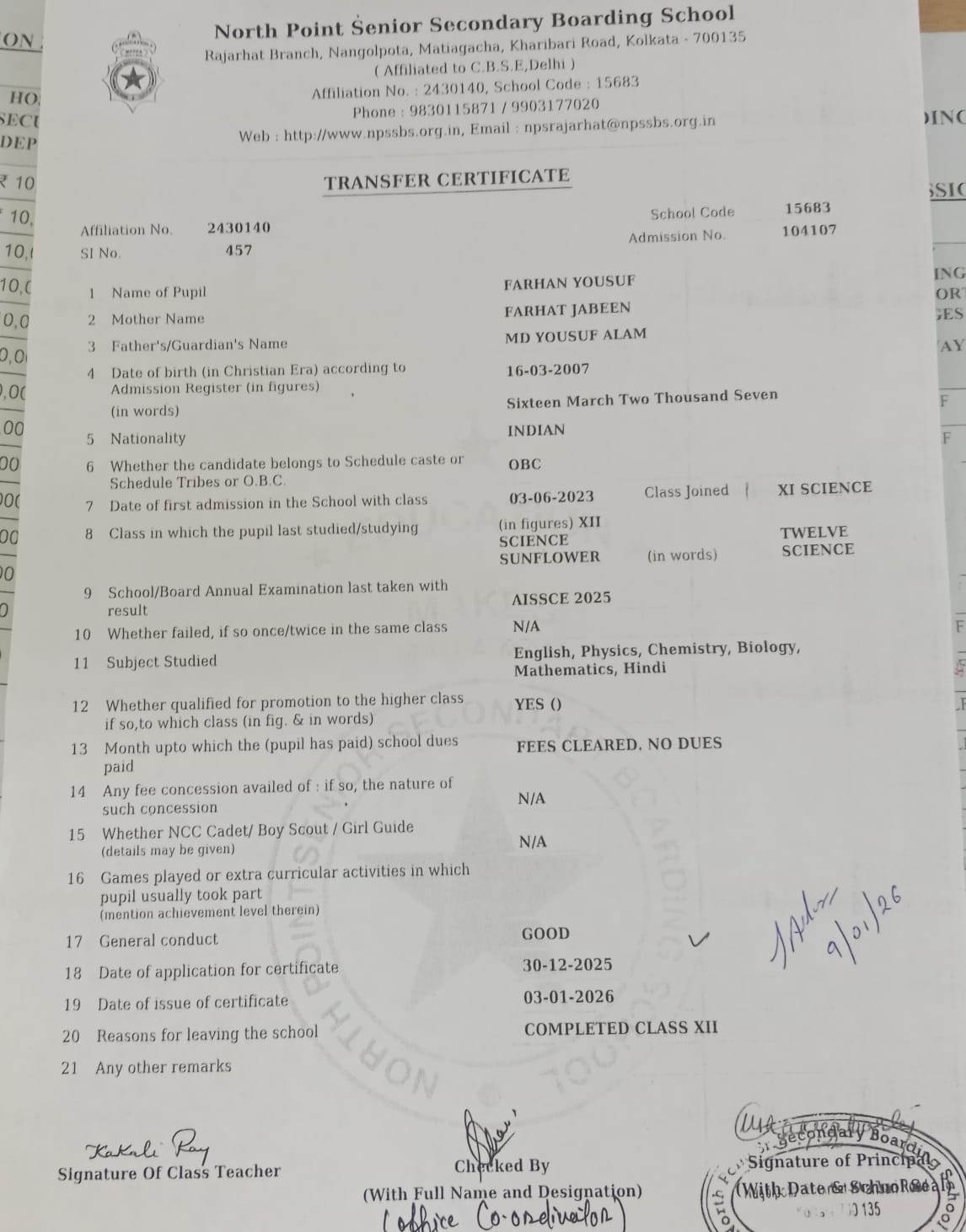 ADMISSION GOING ON FOR CLASSES NURSERY to 9 for the SESSION 2026-27